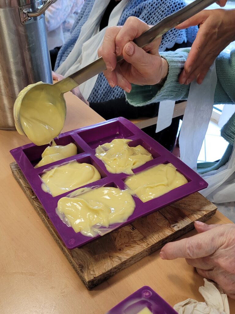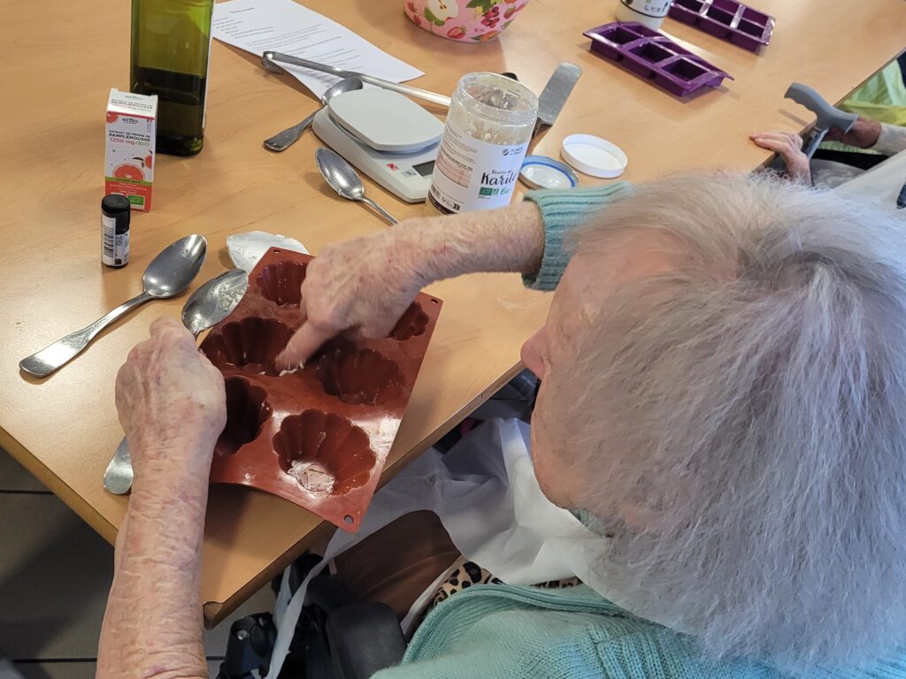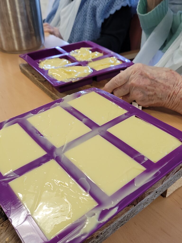 Au vue de l’arrivée prochaine de notre marché de Noël, nos résidents se sont mis au travail pour fabriquer des savons artisanaux à la verveine.