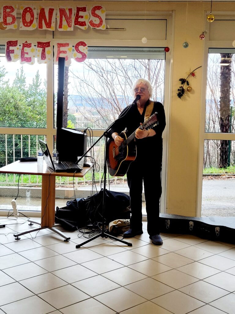 De belles chansons françaises interprétées par l’artiste local Dominique Poncelet dit « Ponpon » qui nous a fait l’honneur de sa présence et qui par son talent et sa générosité a littéralement « embarqué » avec lui les quelques 80 résidents présents en cette occasion ! 🎼🎤